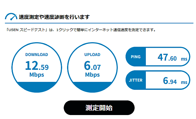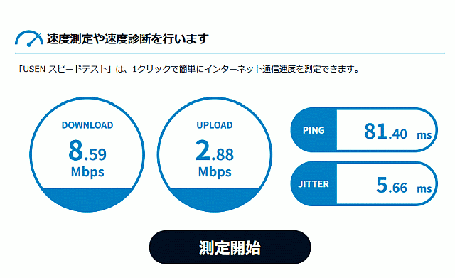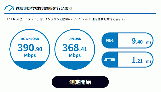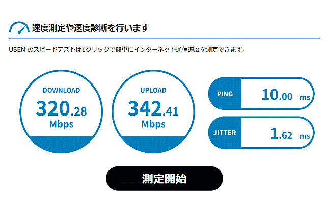 「USEN スピードテスト」を利用させていただきました。