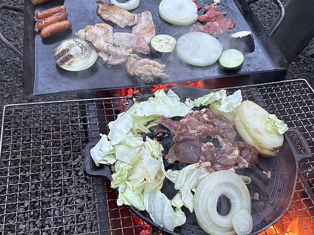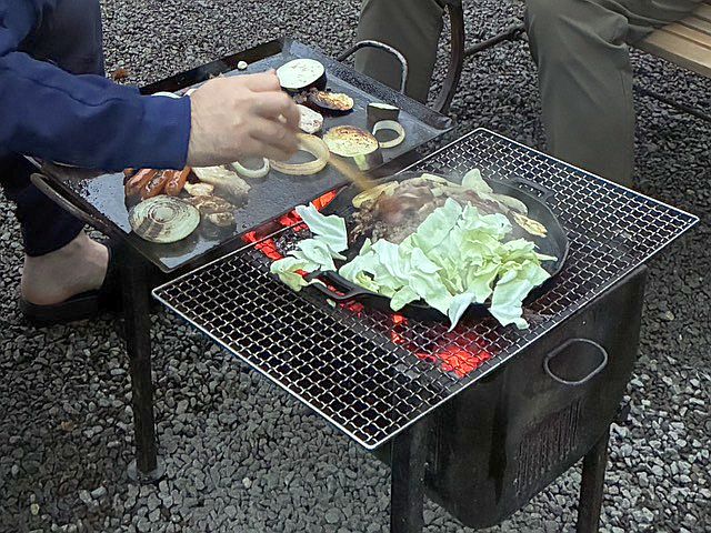 そして夜は庭先で炭をおこして北海道定番の所謂ジンギスカン(羊肉)と、牛・豚・鳥とあらゆるおいしそうな肉を焼いて、例によって婿殿と妻はウーロン茶で、娘と私はビールで「かんぱぁい」。