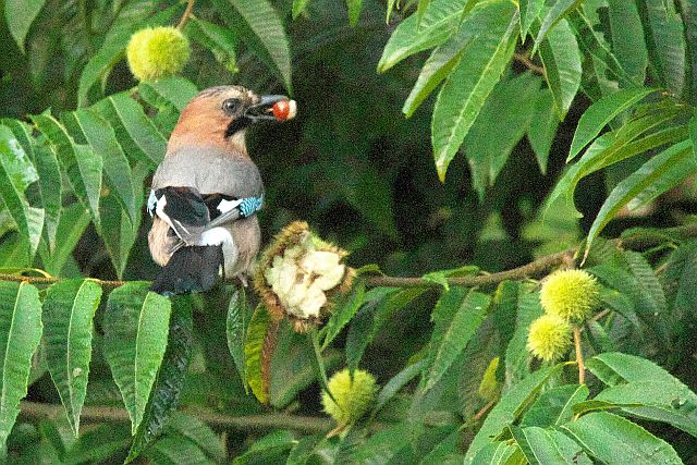 今年の栗はミヤマカケスに 自然・動物 2025.10.03 自然・動物 20数年前に拾ってきた栗の実から実生で育てた栗の木、今年はミヤマカケスの冬の蓄えになっているようです。 時には、エゾリスも現れるのですが、ミヤマカケスに追われるように小さく遠慮しているようにも見えます。 このような栗の木が3本ほどあるのですが、どの木も朝早くから複数のミヤマカケスが栗拾いならぬ収穫に来ています。 栗の実が落ちてくる前に強引にもぎ取ってどこかに運んでいるようです。 そう言えば例年になくドングリ見かけません。まぁ現れるのがヒグマじゃなくてよかったと思うことにしました。