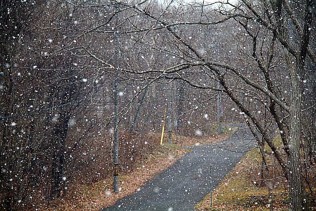 前日の午後に降り始めた雪、時折前が見にくいほど強く降る時間帯がありました。